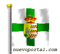 de color blanco, con una cruz verde, y el escudo municipal brochante al centro, en sus colores