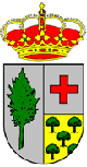 plata, una cruz griega, de gules. Tercero, en campo de oro, cinco olivos, de sinople, puestos en sotuer. Al timbre, Corona real cerrada.
